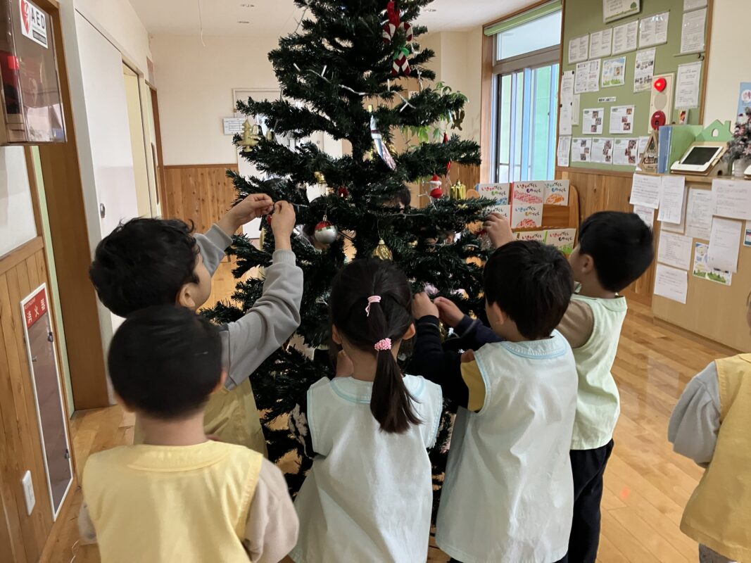 もうすぐクリスマスということで、活動中に5歳児がツリーの飾りつけをしてくれました!
