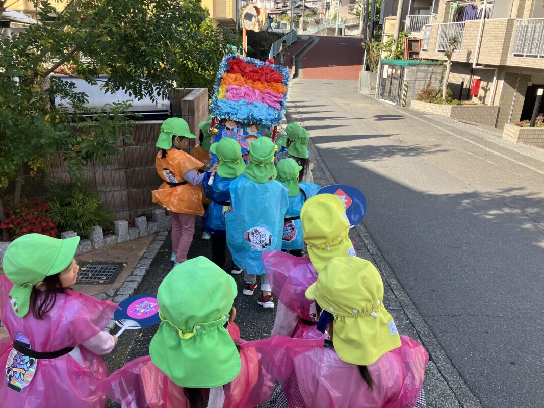 保育ブログblog 2025.12.12 わっしょい!わっしょい!お神輿わっしょい! 園内でお神輿のお披露目会を終え、今度は地域の周りをお神輿を担いで歩きました😊 〝 わっしょい!わっしょい!お神輿 わっしょい! 〟と元気いっぱい声を出しながら歩き、 お神輿に気付いた地域の方々が手を振ってくれたり、「頑張れ!」地域の方々の声援をいただきながら たくさん見てもらって子ども達も大満足でした✨ お神輿作りから次は何に発展していくのか、今から楽しみです🎵 前の記事 一覧に戻る 次の事例
