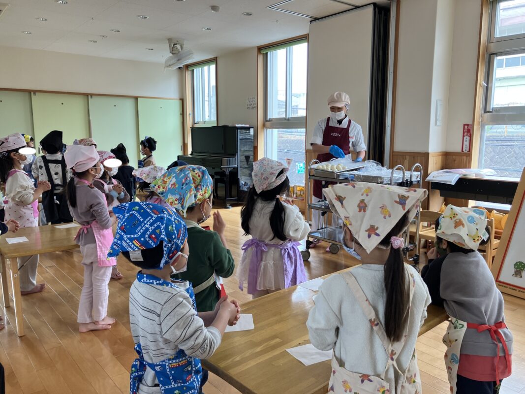 最後の仕上げは、給食さんにバトンタッチをして作ったパンをおやつの時に食べました😆