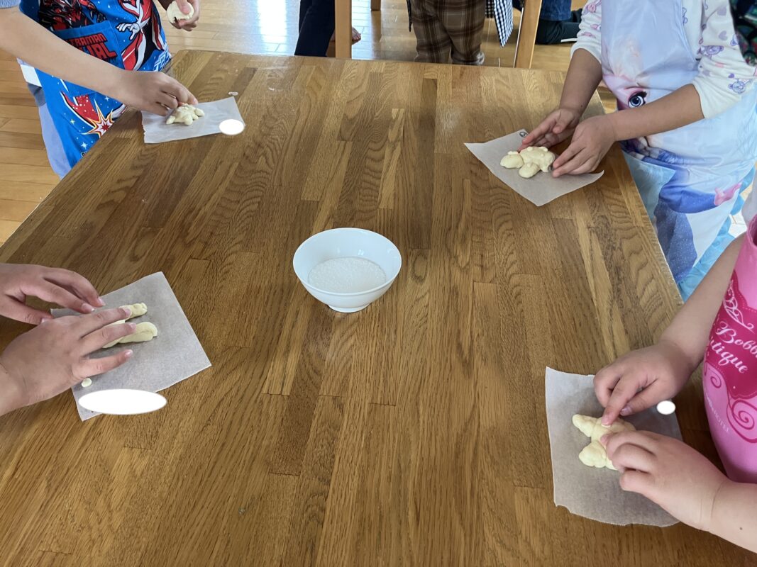 パンの生地をこねたり形を考える姿が見られました😊🎶